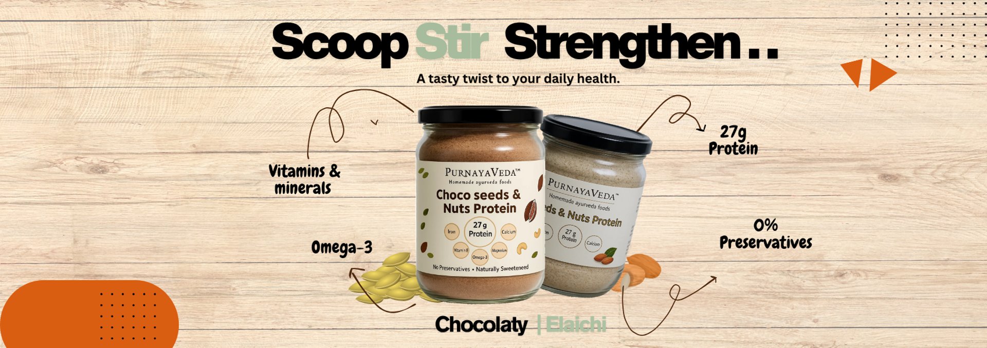 Say hello to Purnayaveda Milk Mix – a powerful blend of protein, seeds, herbs & ancient wisdom.